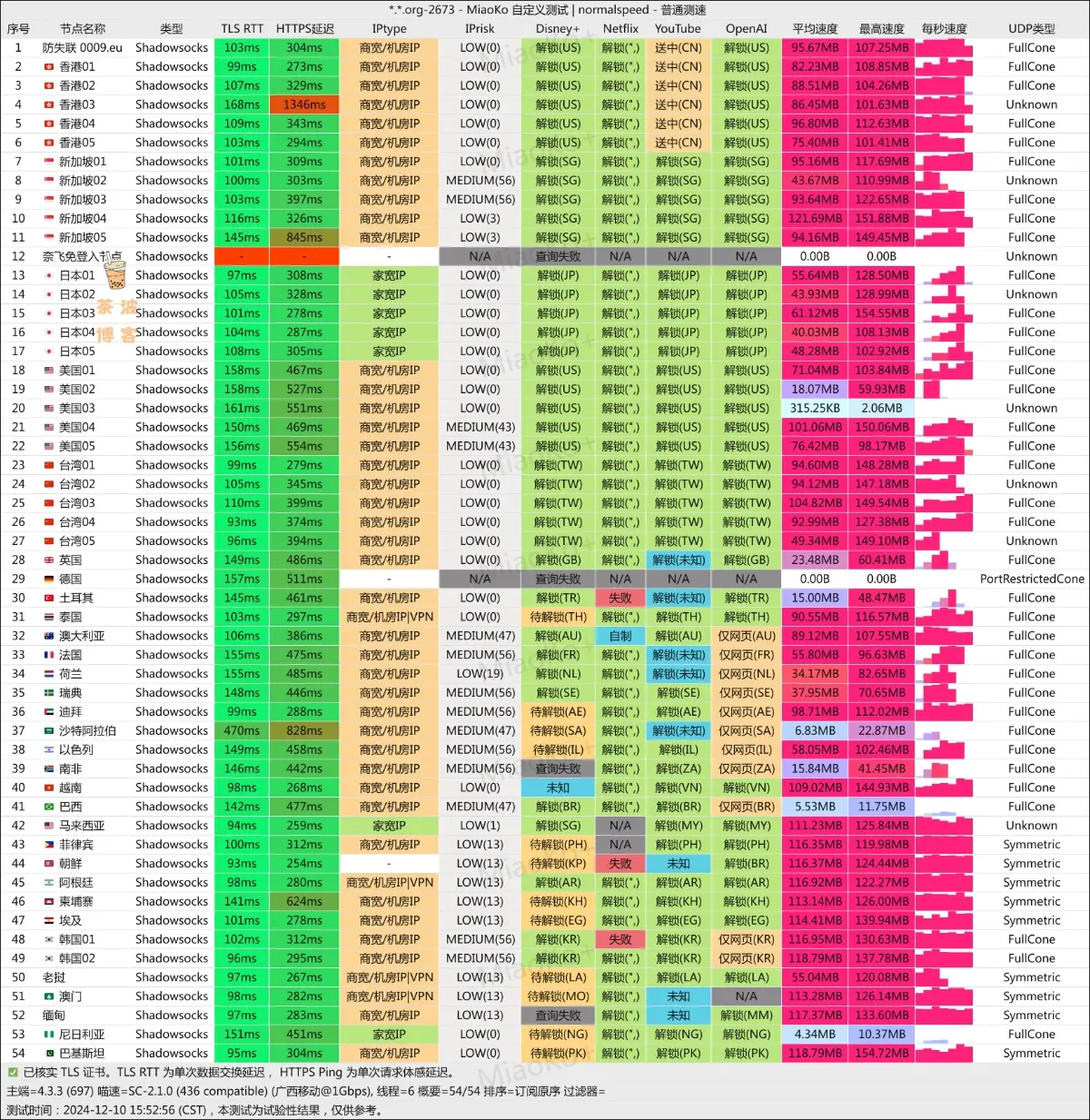 电信/联通/移动测速及流媒体解锁情况:
